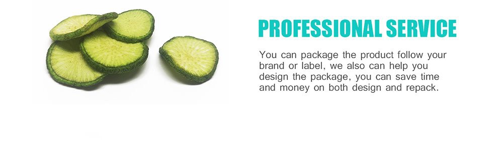 TJTTN vaakumis praetud rohelise redise viil järgib teie laialdase turundusnõudluse jaoks tippkvaliteeti, parimat närimismaitset, tervist ja palju maitseid. Meil on rohkem kui 10 aastat nii VF-köögivilju kui ka väikeseid kotte, mis mitte ainult ei paku rohkem kogemusi ja nõu teie disaini ja müügiturunduse jaoks sobiva suuruse kohta, vaid ka säästaksid rohkem kulusid pakendil oleva suure tootega, mis võib ka teie kulusid kokku hoida, et pakume teile rohkem kasumit. Meil on 50g, 100g, 200g, 500g ja 1kg väikesed kotid laia piirkonna nõudluse rahuldamiseks, näiteks isiklikud suupisted kottides, peresnäkid, ettevõtte koosolekute suupisted, reisisuupisted, pidusuupisted, kinosuupisted jne. Meie vaakumfriteeritud Green Rediseviilu spetsifikatsioon ja tooraine on stabiilsed, erinevate väikeste koti suuruste jaoks võiksime pakkuda ka erinevas suuruses vaakumis praetud rohelise redise viile. Enamik järgib meie klientide nõudmisi, millele keskendume, rahuldades meie klientide nõudmisi, on meie suurim järgija. Kui te pole meie vaakumis praetud rohelist rediseviilu maitsnud, siis ärge jätke kasutamata võimalust maitsta, meie vaakumis praetud rohelise rediseviilu krõbe maitse ja vähese õlisisaldusega tervisetoit võivad teile pakkuda teistsugust suupistet kui traditsiooniline suupiste.
